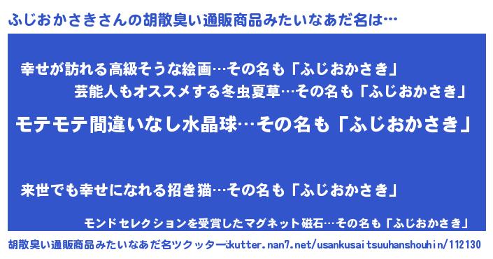 | ヘコむあだ名 | 『ふじもー』『つくし』『ふじお』 |