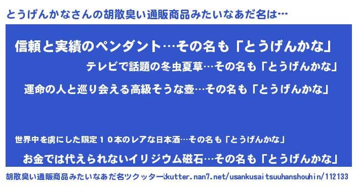 | 意味不明あだ名 | 『とうげんかなフォーエバー』 |