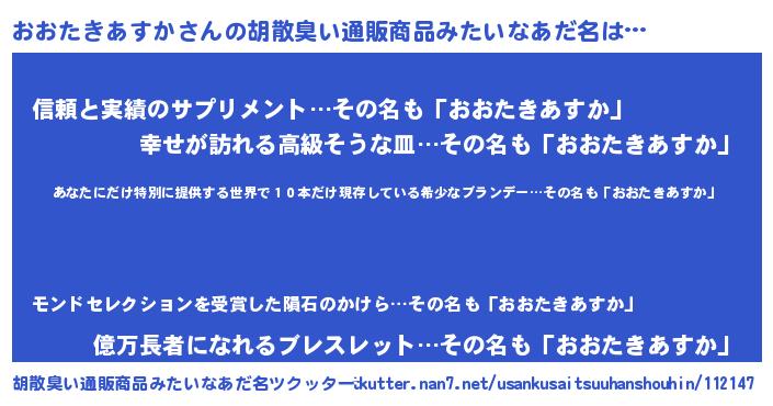 | 肩書あだ名 | 『おおたきあすか少将』 |