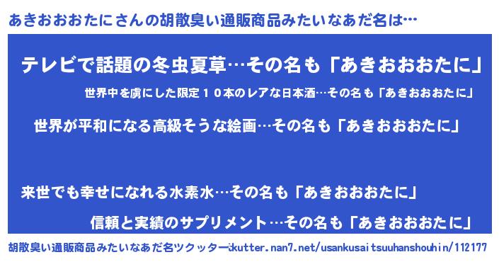 | 意味不明あだ名 | 『あきおおおたにフォーエバー』 |