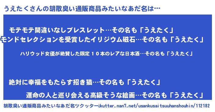 | 意味不明あだ名 | 『住所不定無職うえたく(65歳)』 |
