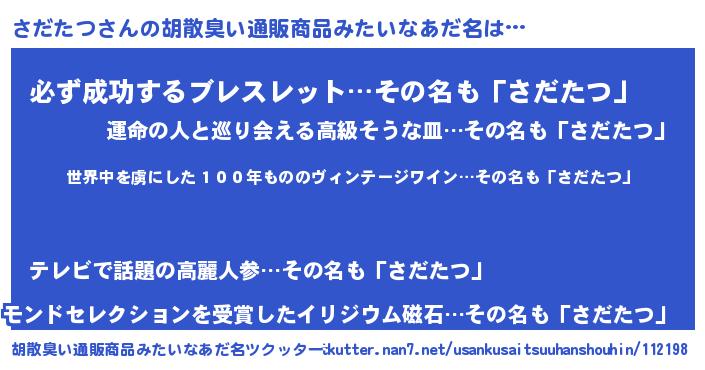 | ヒーロー風カッコイイあだ名 | 『仮面サダダー』『スーパーサダタツ』 |