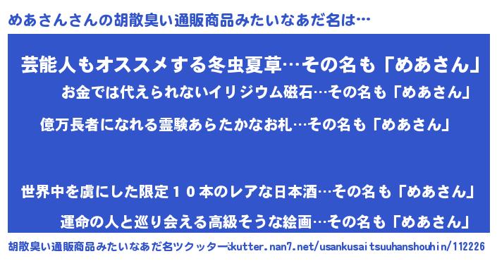 | 欧米人風あだ名 | 『マイケルめあさん』 |