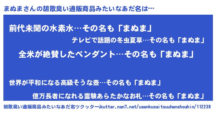 | 意味不明あだ名 | 『とにかく怪しいまぬま』『自称まぬま』 |
