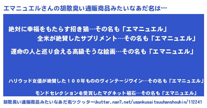 | 欧米人風あだ名 | 『トリンドルエマニュエル』 |