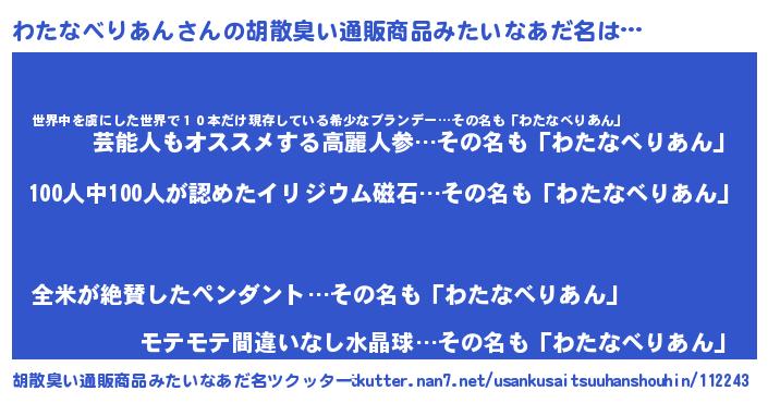 | ヒーロー風カッコイイあだ名 | 『正義の使者わたなべりあん』 |