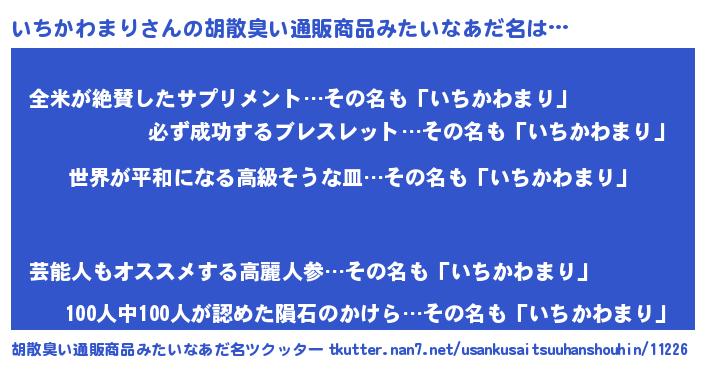 | 男性向けラノベタイトル風あだ名 | 『転生したらいちかわまりだった件』 |