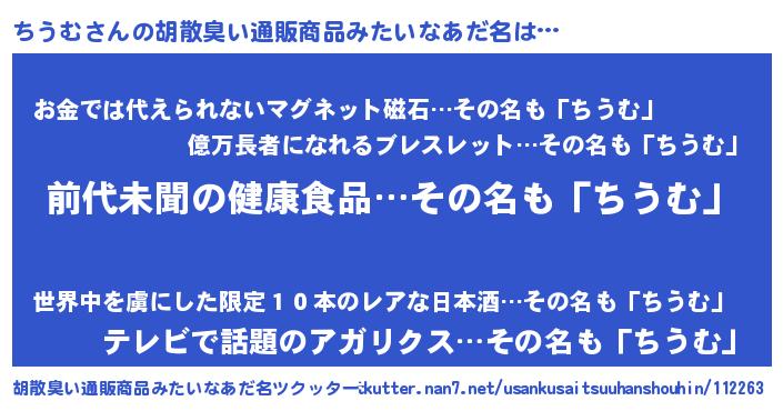 | ヘコむあだ名 | 『ちうむ(爆)』『ちうにゅー』 |