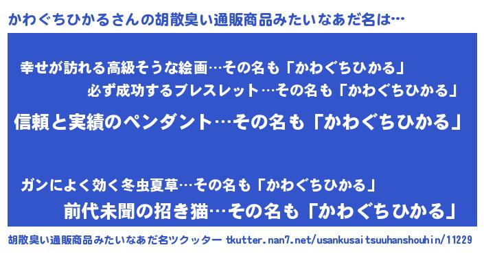 | 意味不明あだ名 | 『とにかく怪しいかわぐちひかる』 |