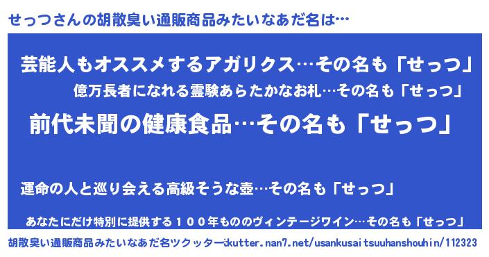 | 意味不明あだ名 | 『永久保存せっつ』『ヨモギ科せっつ属』 |