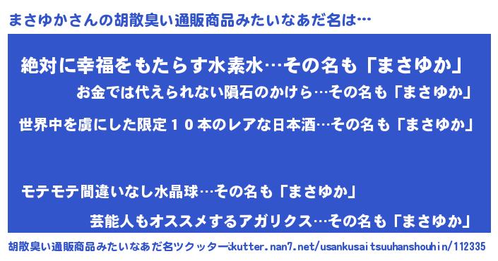 | ヘコむあだ名 | 『まさゆか(笑)』『まさふぇ~』 |