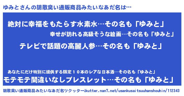 | ヘコむあだ名 | 『ゆみと(笑)』『ゆみにー』『ゆみお』 |