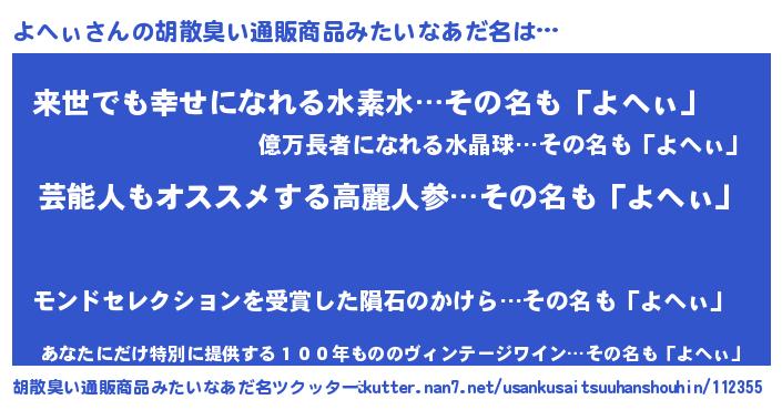| ヘコむあだ名 | 『よへぃ(小並感)』『よへっふぃ~』 |