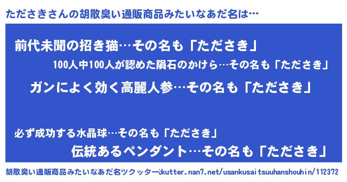 | ヘコむあだ名 | 『たださき(小並感)』『ただを』 |