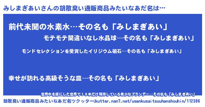 | ヘコむあだ名 | 『みしまぎあい(笑)』『みしもー』 |