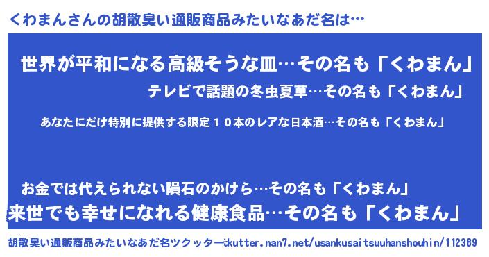 | 意味不明あだ名 | 『住所不定無職くわまん(68歳)』 |
