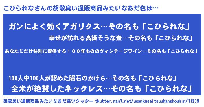 | 意味不明あだ名 | 『ニラ科こひられな属』『自称こひられな』 |