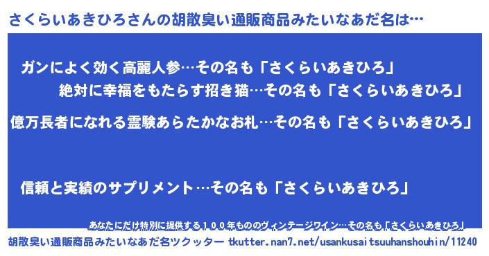 | ヘコむあだ名 | 『さくっふぃ~』『さくらいあきひろ(笑)』 |