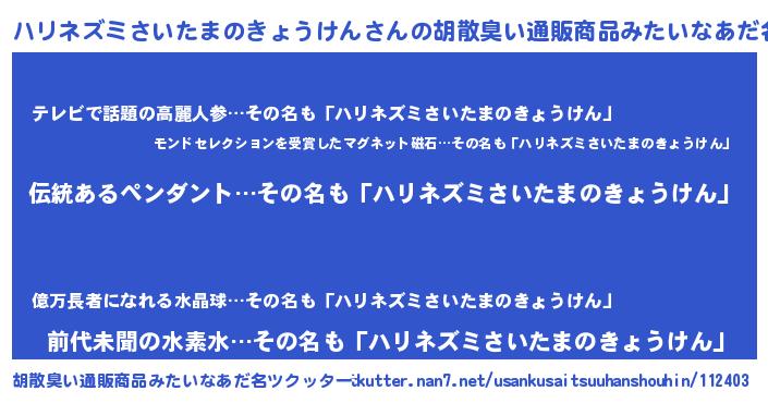 | 料理風あだ名 | 『ポテトとハリネズミさいたまのきょうけんのキッシュ☆』 |