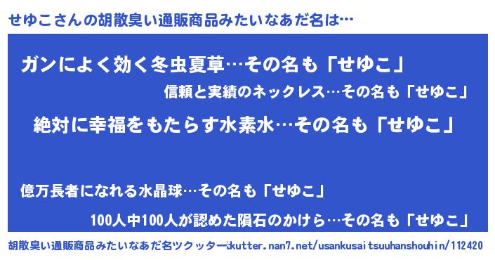 せゆこさんの胡散臭い通販商品みたいなあだ名をツクッター!