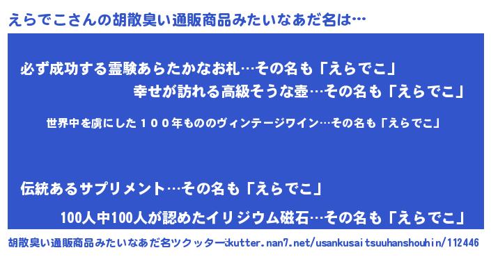 | 意味不明あだ名 | 『住所不定無職えらでこ(8歳)』 |