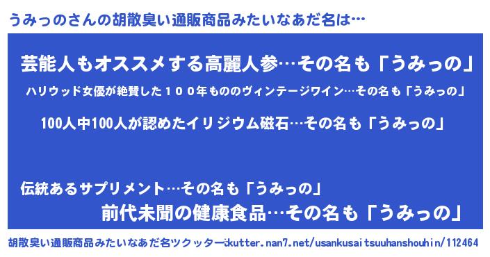 | ヘコむあだ名 | 『うみっの(苦笑)』『うみ太郎』 |
