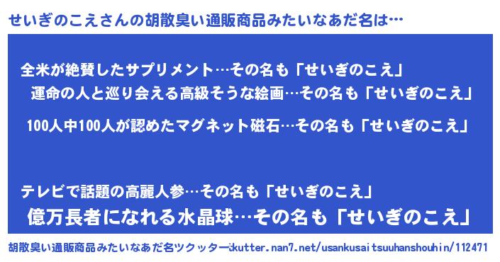 | ポケモン風あだ名 | 『セックウザ』『ヒセイギノコエ』 |
