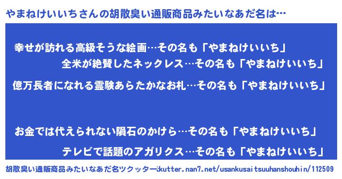 やまねけいいちさんの胡散臭い通販商品みたいなあだ名をツクッター!