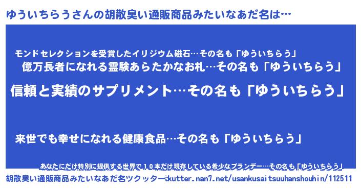 ゆういちらうさんの胡散臭い通販商品みたいなあだ名をツクッター!