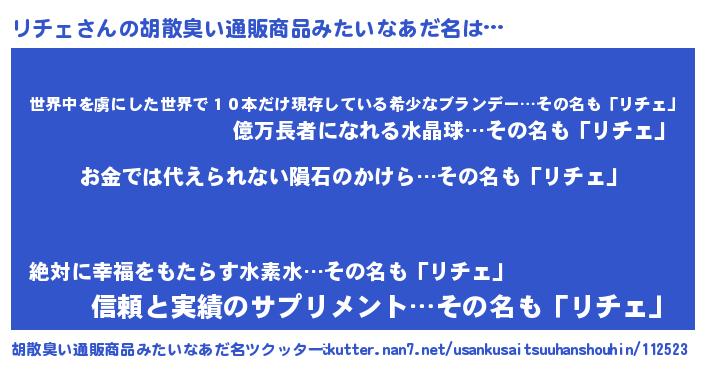 | ヘコむあだ名 | 『リチぷりん』『リチにー』『牛乳』 |
