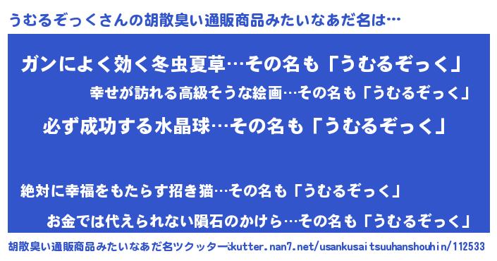| 男性向けラノベタイトル風あだ名 | 『うむるぞっくの憂鬱』 |