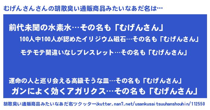 | ヘコむあだ名 | 『むげにー』『むげんさん(遠い目)』 |