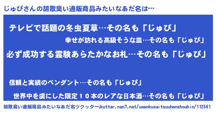 | 男性向けラノベタイトル風あだ名 | 『じゅぴの憂鬱』『はたらくじゅぴさま!』 |