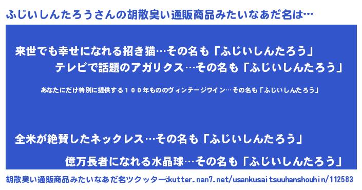 | ヘコむあだ名 | 『ふじいしんたろう(笑)』『ふじにゅー』 |