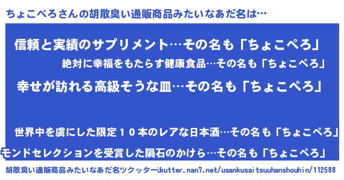 | 肩書あだ名 | 『ちょこぺろ大将』『ちょこぺろ大統領』 |