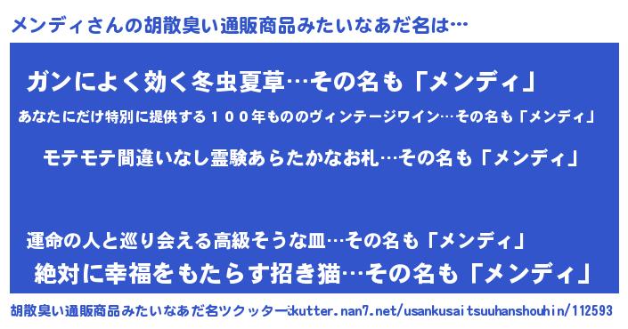 | ヘコむあだ名 | 『メンっふぃ~』『メンディ(爆)』 |