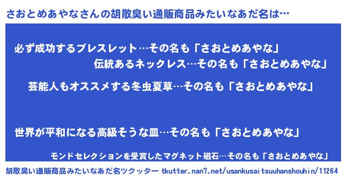 | 意味不明あだ名 | 『自称さおとめあやな』 |