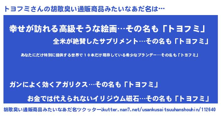 | ポケモン風あだ名 | 『トーヨイ』『トヨフダネ』 |