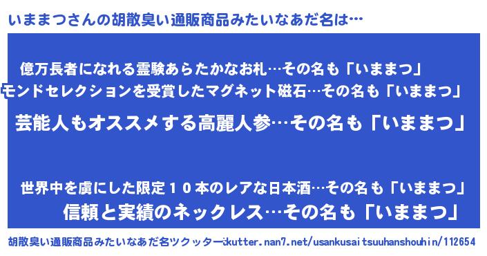| 意味不明あだ名 | 『自称いままつ』『ペロリンいままつ』 |