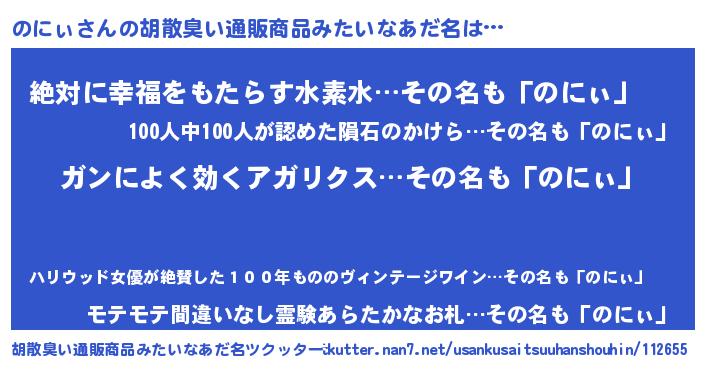 | ヘコむあだ名 | 『のにぃ(爆)』『のにっふぃ~』 |