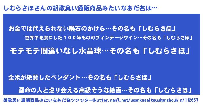 | ヘコむあだ名 | 『しむふぇ~』『なまこ酢』『しむを』 |