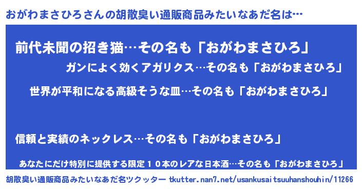 | 肩書あだ名 | 『おがわまさひろ国家主席』 |