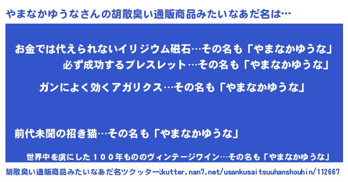 | 意味不明あだ名 | 『自称やまなかゆうな』 |