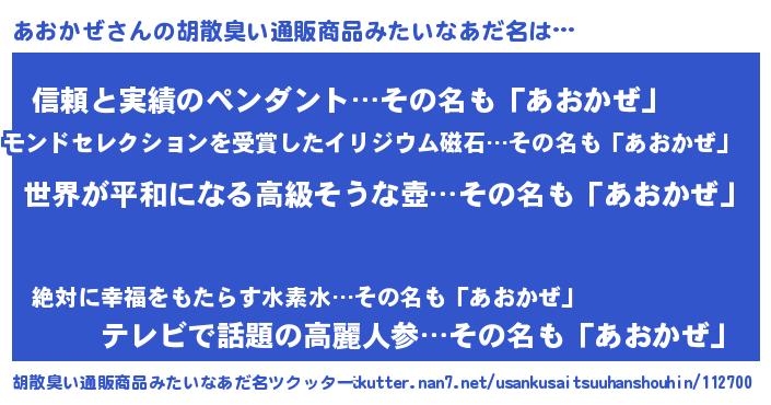 | 意味不明あだ名 | 『あおかぜフォーエバー』『自称あおかぜ』 |