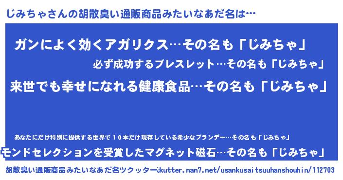 | ヘコむあだ名 | 『じみちゃ(笑)』『じみにゅー』 |