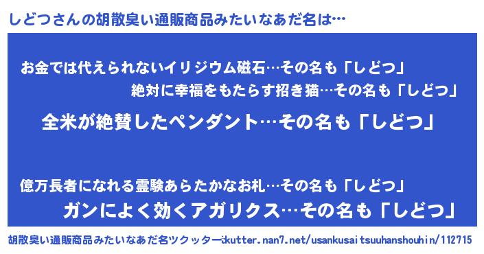 | 意味不明あだ名 | 『とにかく怪しいしどつ』『自称しどつ』 |