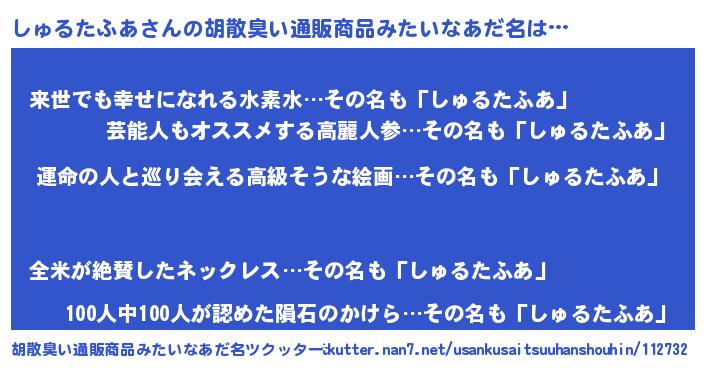 | 意味不明あだ名 | 『しゅるたふあフォーエバー』 |