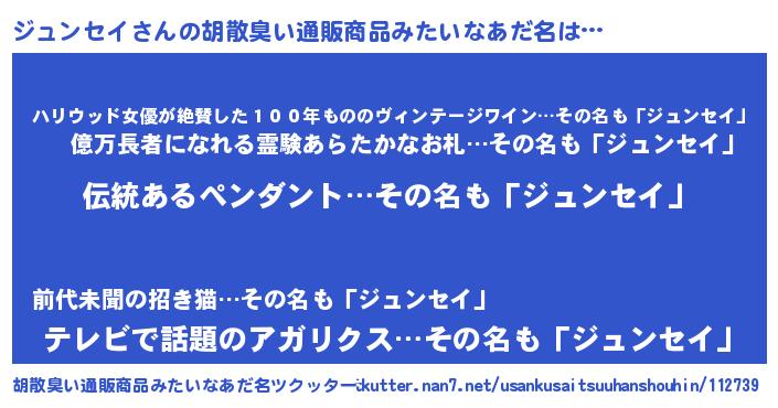| 意味不明あだ名 | 『とにかく怪しいジュンセイ』 |