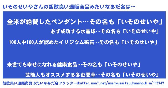 | ヒーロー風カッコイイあだ名 | 『友情の使者いそのせいや』 |