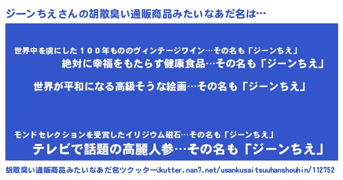 | 男性向けラノベタイトル風あだ名 | 『転生したらジーンちえだった件』 |